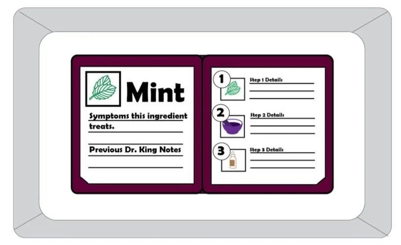 In order to properly communicate with our players how to craft in conjunction with the symptoms that their patients are receiving. After assessing the patients symptoms you must review the doctors almanac to understand what resources you need to treat them.